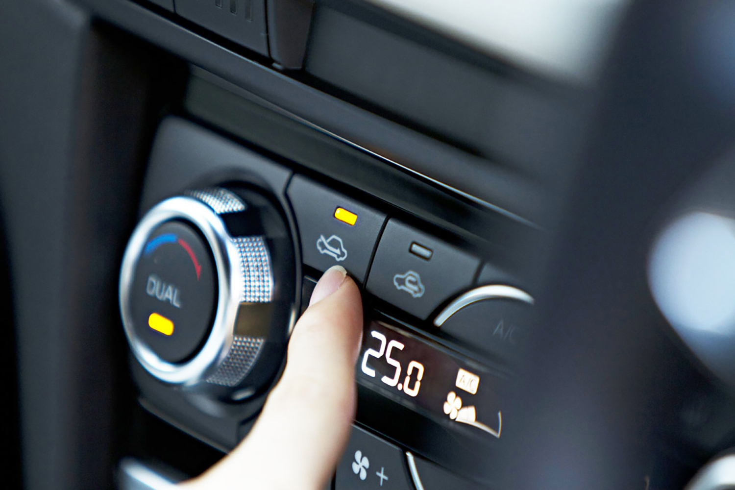 ちなみに猛暑日など暑い日にもっとも早く車内の温度を下げる方法は、まず窓を全開にし、エアコンをLoに設定して外気導入で走行します。2分後に窓を閉め、エアコンを内気循環して3分間走行する方法だというテスト結果があります。