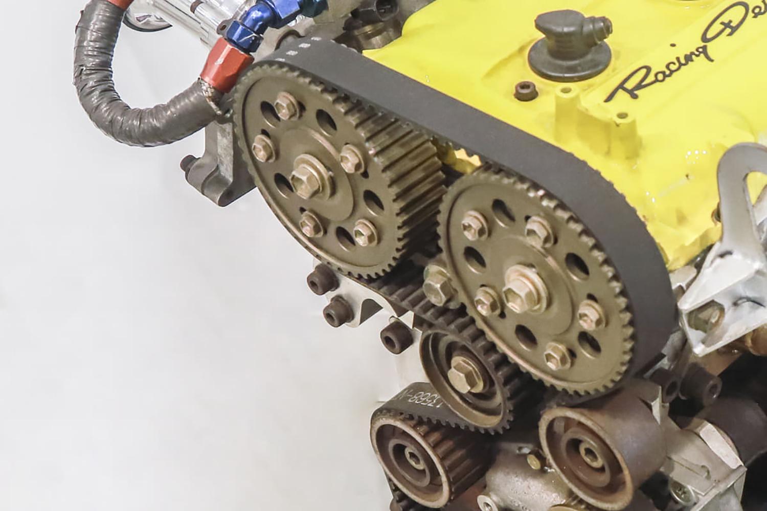 かつてこれを行ったのは、自転車などで使われる金属チェーンだった。しかし、走行を重ねると調整が必要だったり、チェーンがプーリーの歯と噛み合う際などに騒音があったりして、より上質な商品性を求めゴム製のベルトに転換された。それも単なるベルトではなく、プーリーの歯と噛み合う凹凸のあるコッグドベルトと呼ばれるベルトの採用によって、チェーンと同じようにピストンの上下動と吸排気バルブの作動を正確に合わせてきた。