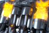 新気を圧縮し、ガソリンと混合して(直噴ではなくポート噴射であればすでに混合気になっている)、点火プラグによって混合気が燃焼した力によってピストンは再び押し下げられ、回転力を生む。