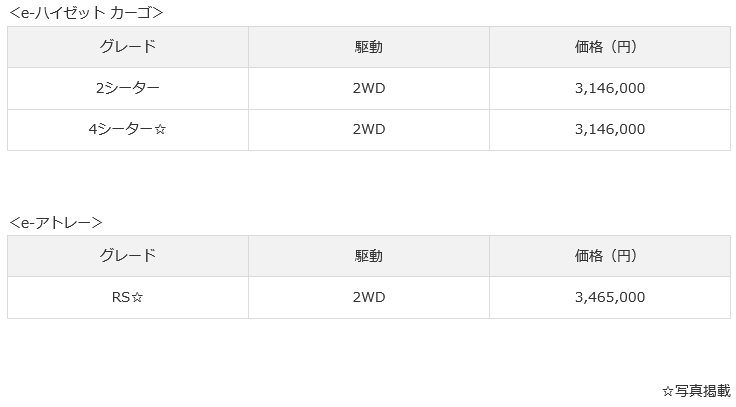 ベース車と同等の荷室スペースを最大限活用しながら、仕事にもプライベートにも活用できるモデルとして「e-アトレー」を設定