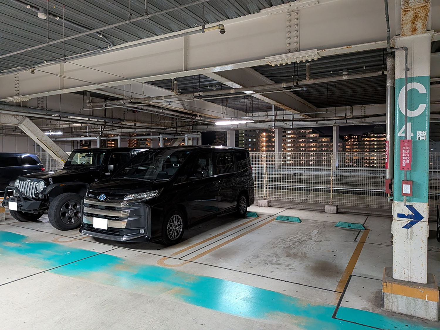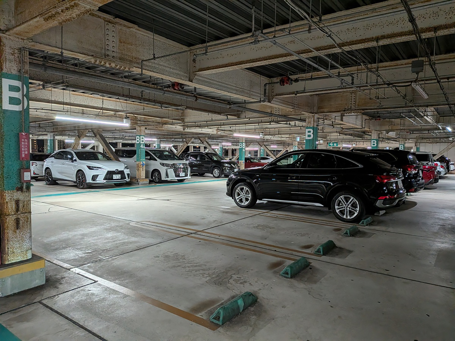 これは端の駐車スペースに停めるのと同じで、隣のスペースが天井からの水漏れ、タイヤ停めの破損などで三角コーンによって駐車不可となっているスペースの横であれば、ドアパンチされるリスクが半減する。