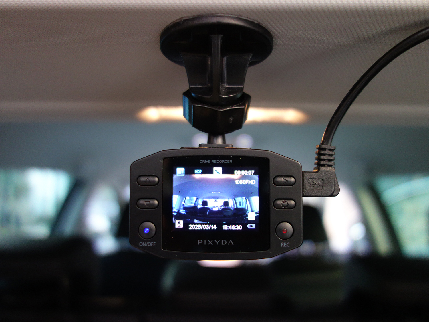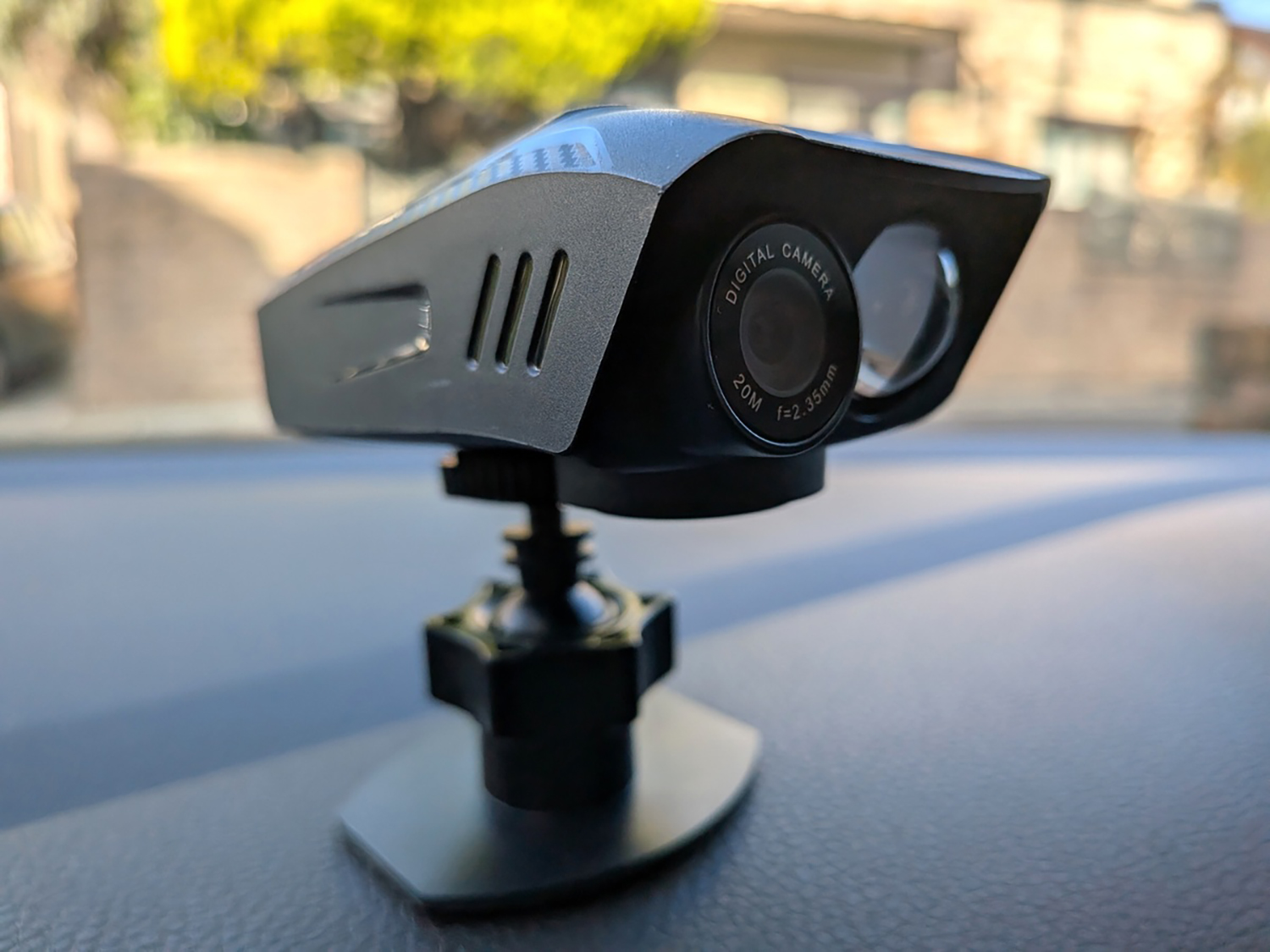 ただ、左右の画角はそう広くないので、ダッシュボード上に置き、車体左右のどちらかに向けて使うしかない。仮に、左側が壁の駐車スペースに停めることができれば、車体右側にレンズを向けてセットすれば、右側に停まったクルマを監視できることになる。※画角の確認はスマホでも可能。日付や時刻の記録も可。