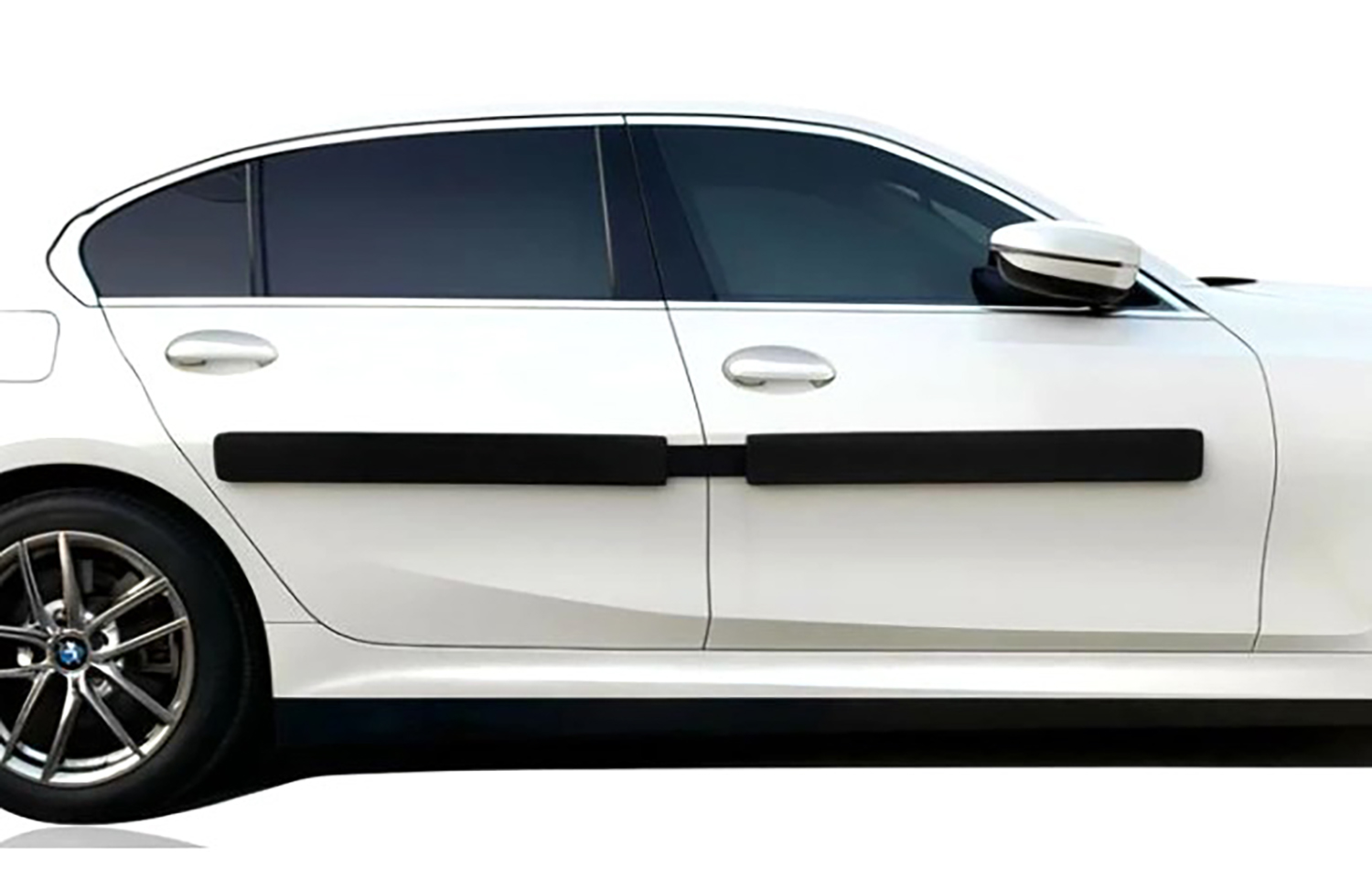 ボディサイドプロテクターにはさまざまな種類があるが、スマートな細いボディサイドプロテクターではドアパンチ被害を防ぎにくい。そこで紹介したいのが、ドアパンチ防停プロテクターだ。筆者がネットで見つけたのは、EVA素材で厚さ3㎝、長さ85㎝のマグネット式(ここがポイント)プロテクターで、アルミボディ、樹脂ボディでない金属ドアであれば、マグネットでサッと張りつけ、取り外すことが可能のようだ(取付位置は要考慮。取り付け面が汚れているとキズの原因になるので要注意)。まぁ、ちょっと大げさな気もしないでもないけど……。※DIYで作れないこともない。棒状のクッション材に磁石テープを接着剤で貼り付けるなど。