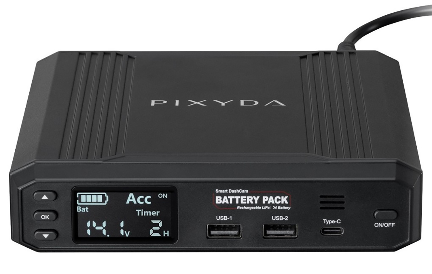 駐車中の監視に駐車監視ドライブレコーダーが役立つには役立つものの、バッテリーの負担が気になるところ。が、筆者は、サブのドライブレコーダーとして用意している駐車監視用のドラレコに電源を供給してくれる、高温に強いリチウム鉄リン酸塩(LiFePO4)バッテリーを搭載したセイワの多機能バッテリーRAY28から電源を供給している。アクセサリーソケットに接続し、走行中に電気を蓄え、エンジンを切ってもその蓄えた電気をドラレコに1時間単位で設定し、供給してくれるのだ(タイマーセットは1時間から可能で、最大24時間まで対応)。