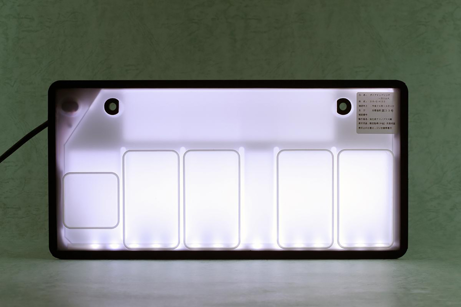 軽自動車用の字光式ナンバープレートの交付が遅れたのは、軽自動車のナンバーの文字部分が黒色で、発光による光の透過に不適なため。その実用化に成功した旭化成テクノプラスによると、皆既日食の「ダイアモンドリング」をヒントに文字の輪郭を発光させるというアイディアによって実現を可能にしたとのこと。