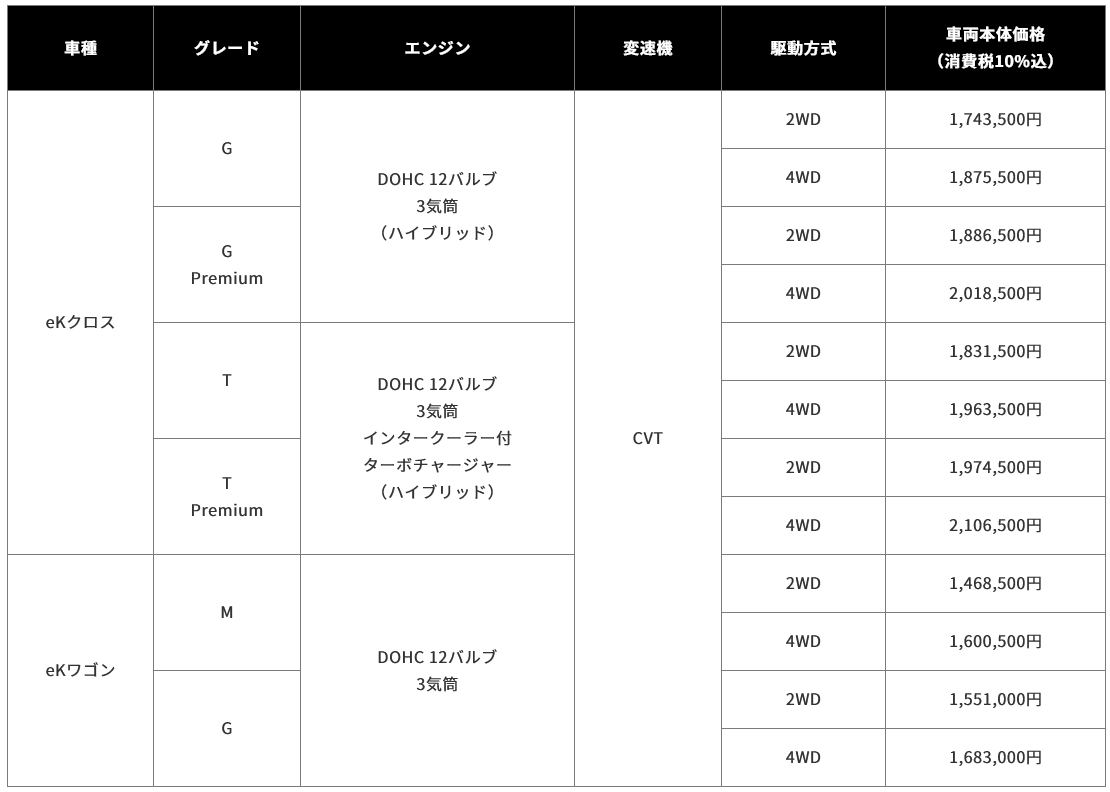 三菱自動車工業株式会社(本社:東京都港区、代表執行役社長兼最高経営責任者:加藤 隆雄、以下三菱自動車)は、軽ハイトワゴン『eKクロス』『eKワゴン』を法規に適合させるなど一部改良を施し、7月24日(木)から全国の系列販売会社で販売を開始します。メーカー希望小売価格は、『eKクロス』が1,743,500円~2,106,500円(消費税10%込)、『eKワゴン』が1,468,500円~1,683,000円(消費税10%込)。
