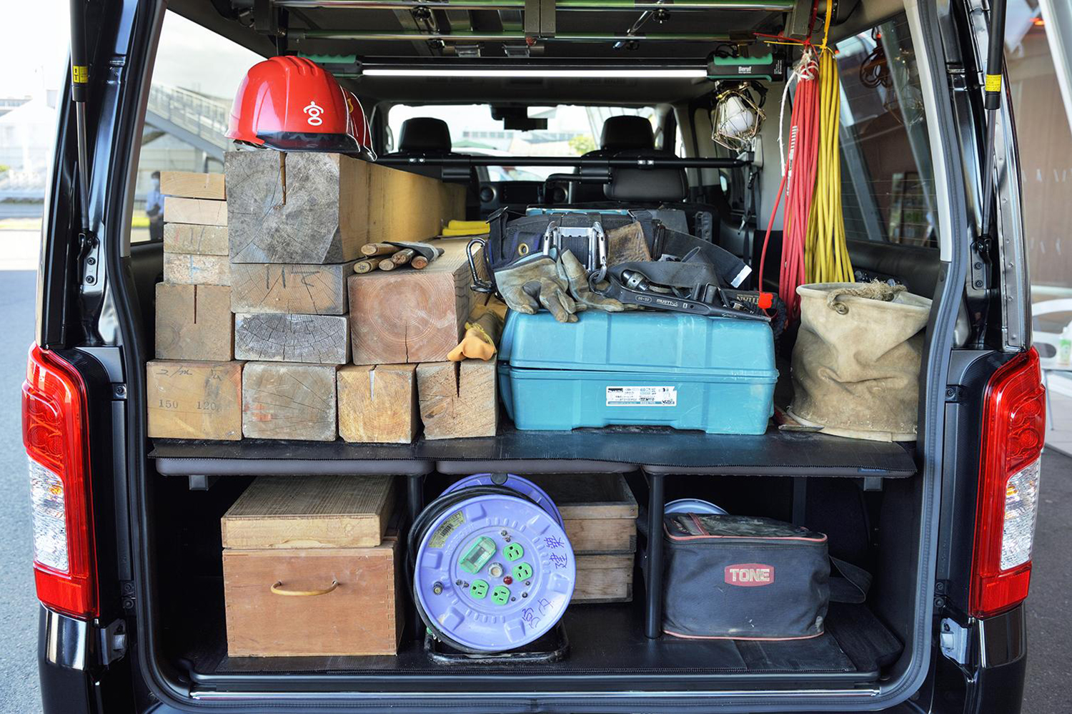 1BOXといえば、トヨタ・ハイエース、日産キャラバンといったモデルも日常使いで活用されることの多いモデルだ。こちらは建築業などのビジネスシーンで使われることを想定した設計だが、それだけに拡張性あるラゲッジスペースが魅力。釣りやキャンプ、車中泊などのレジャーに合わせて、棚やベッドを備え付けているオーナーも多いことだろう。
