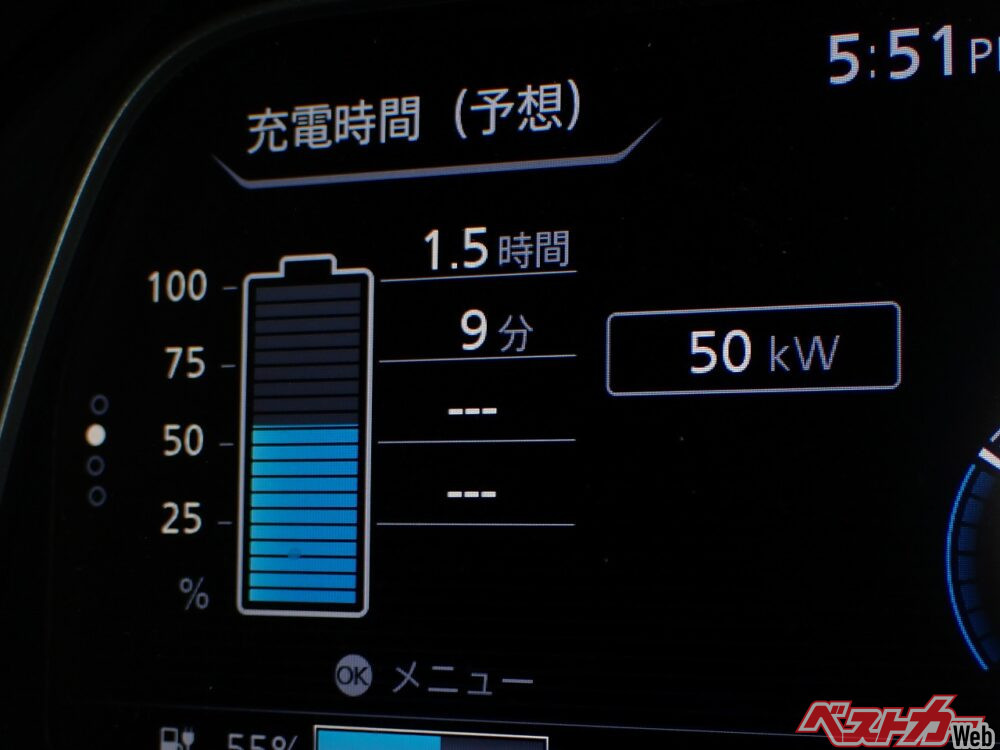 暖房を常時最大出力で使い続けると、バッテリー残量の低下は早い。逆にエアコンを控えめにしたり、シートヒーターだけを使うなどの工夫をすれば、より長く電力を持たせることができる。