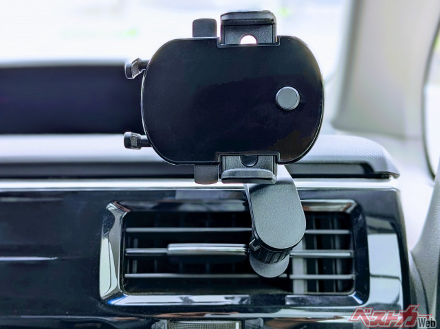 前方の視界を妨げない位置、法律上問題のないスマホホルダーの取り付け位置はダッシュボードの上、エアコンの吹き出し口、ドリンクホルダーとなっている。