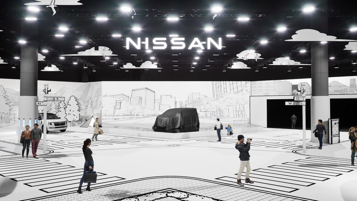 「モビリティの未来の姿(#FUTURE)」や「モビリティそのもの(#CULTURE)」など同ショーの考え方を反映した日産のブースデザインは、日本のマンガ文化からインスピレーションを得たモノクロの大胆な色使いが特徴です。新型エルグランドをはじめとする魅力溢れる日産車を展示すると同時に、アートと最先端技術が融合した空間として、日産の最先端のイノベーションやサービスを紹介します。
