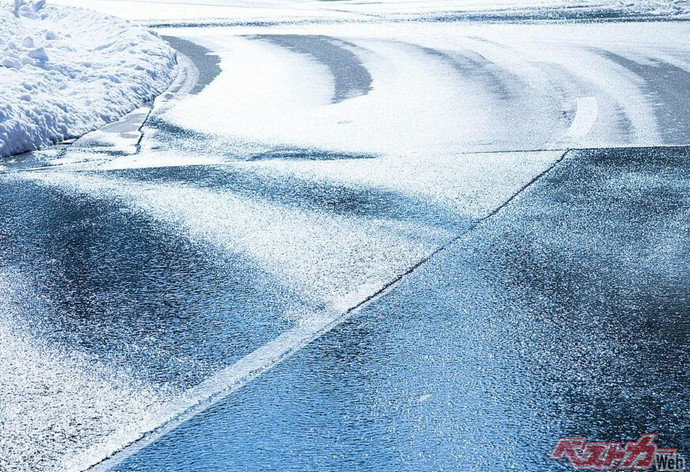 アイスバーンは雪道以上に滑るのということを頭に叩き込んでおこう。当然、急のつく運転は控えなければいけない。