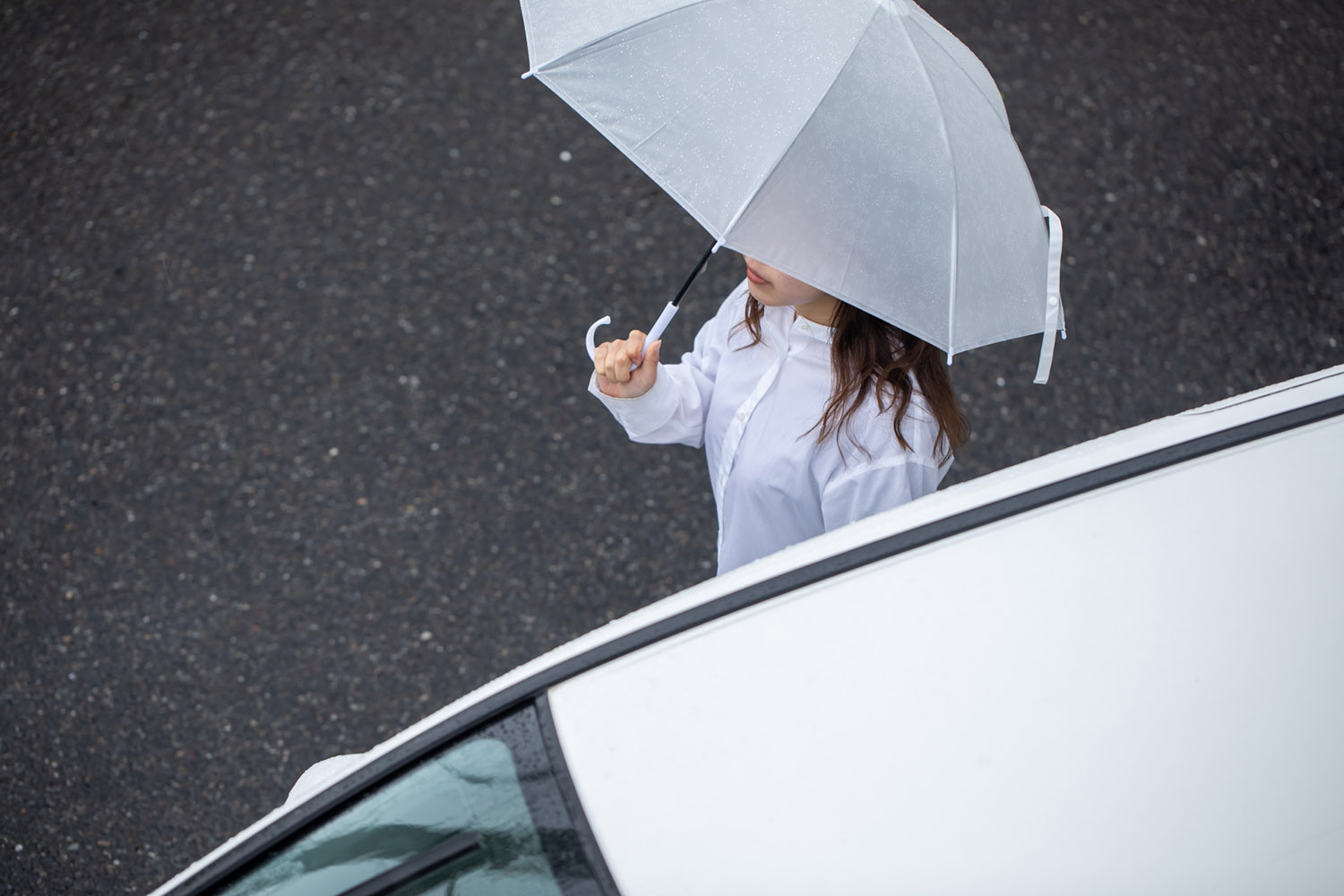梅雨の時期、狭い道などを通るとき、気をつけていたとしても歩行者の傘とクルマが接触してしまうことがある。