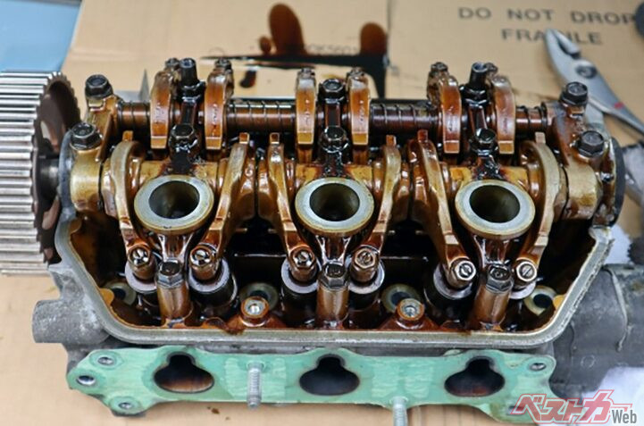コールタールを盛り付けたがごとく盛り上がってくる。事実、過去に粘土状のスラッジでカムシャフトが埋もれていたという事例に遭遇しています。