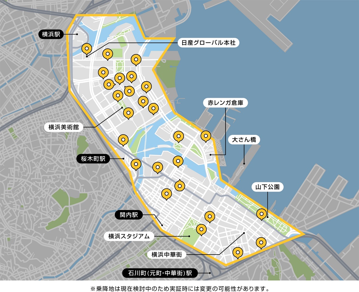 本実証実験は、横浜市のみなとみらい・桜木町・関内を含む市街地エリアにて11月27日から約2か月にわたり実施します。本実証は、4社と横浜市が協力し、「セレナ」をベースとした自動運転車両*1の運行に必要な遠隔監視のための専用管制室をみなとみらい地区の「PLOT48」に設置し、実際の配車サービスを通じて、将来必要となる運用体制の課題抽出、およびサービスエコシステムの構築を行うことを目的としています。