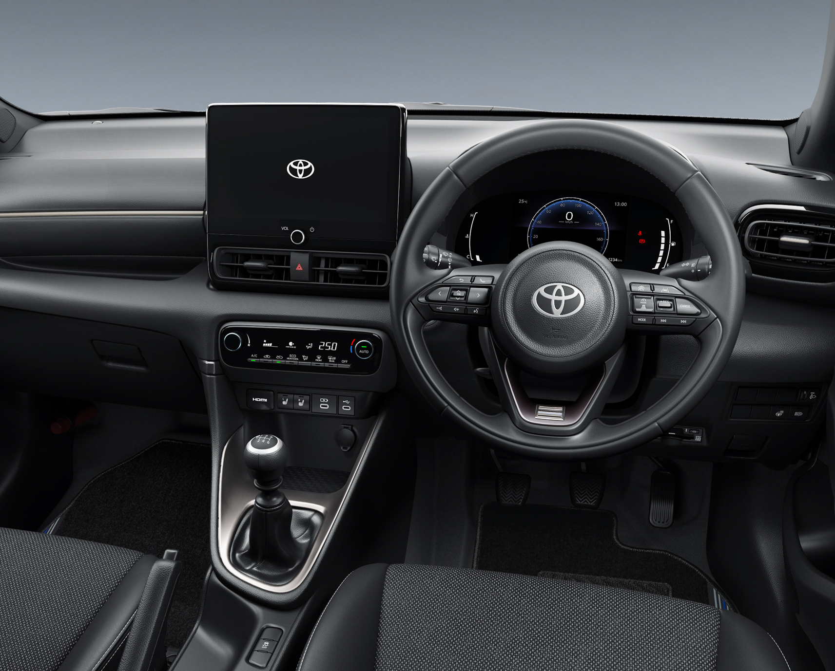 インテリアは、センターコンソールからディスプレイオーディオ(DA)にかけての縦方向の流れを強調することで、力強さを表現した。