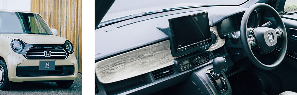 N-ONEは、タイムレスなエクステリアデザインと、Hondaの乗用車の原点である「N360」から継承するHonda独自のM・M思想に基づくミニマルで心地よい室内空間を追求したモデルです。