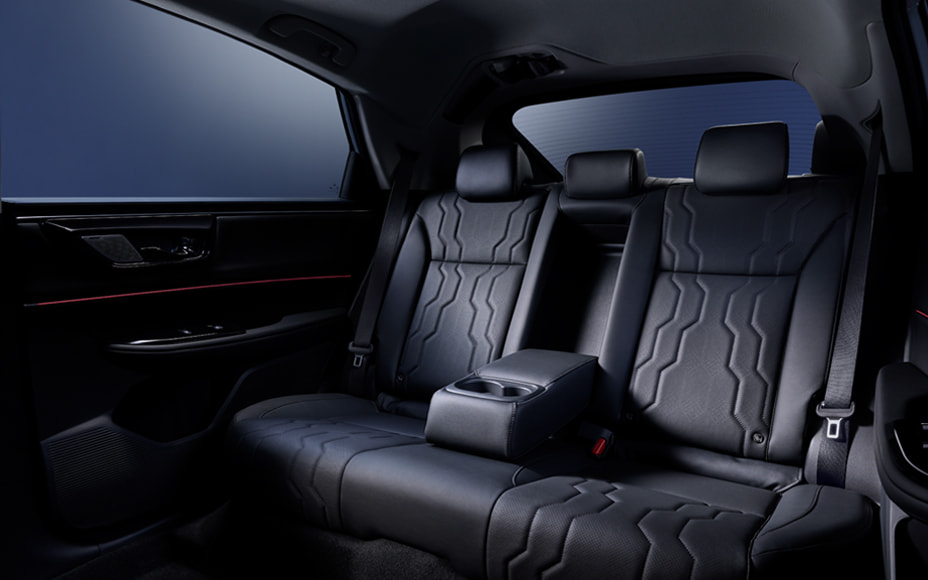 インテリアは、包み込むような造形と、空間全体のつながりを意識したラウンドデザインを目指しました。上質なソフトパッド素材を採用するとともに、収納やワイヤレス充電器などの装備で使い勝手を高めることで、室内全体が一体となって心地よく過ごせる空間を追求しています。