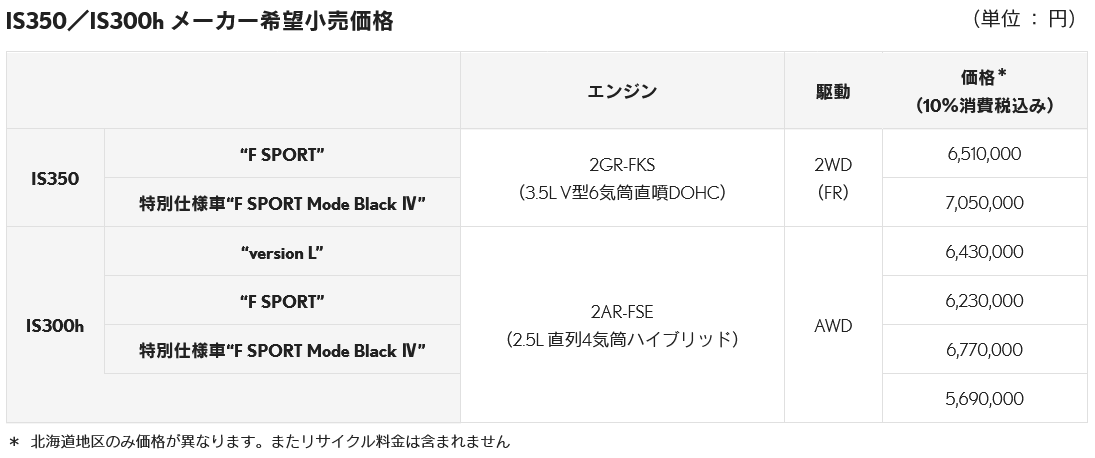 *IS500/IS300/IS300h(FR)は、2025年1月23日に一部改良を実施