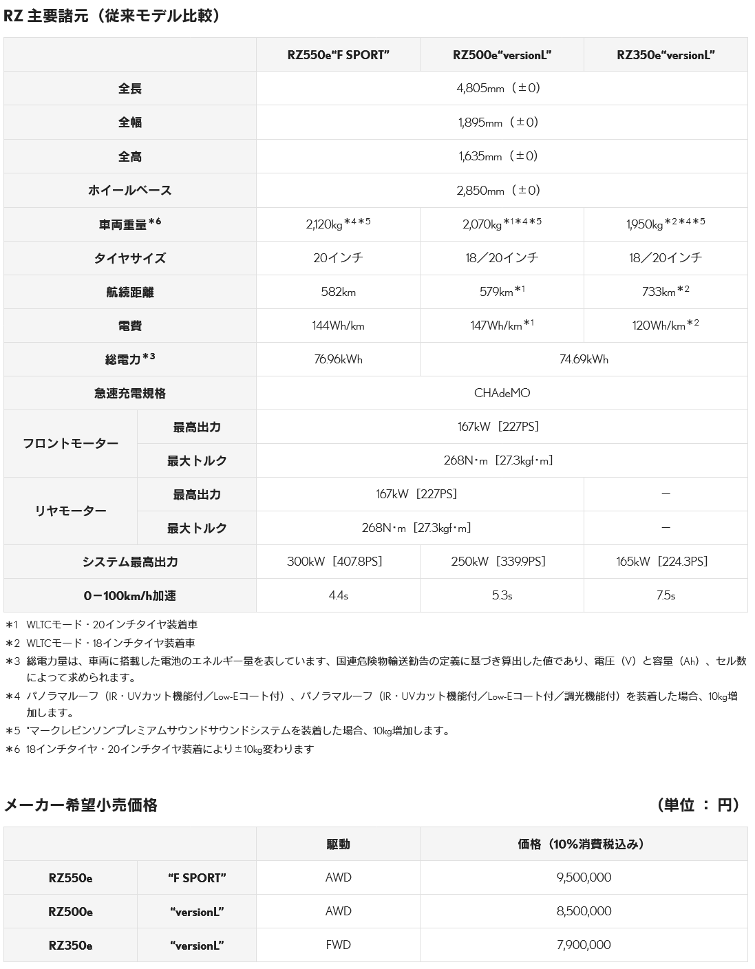 「RZ」新型モデルの主な特長