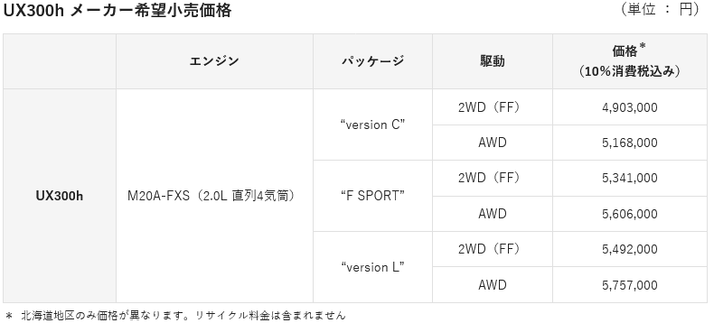 LEXUS、「UX300h」を一部改良