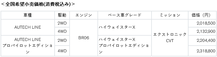 今回、現在販売中のインタークーラーターボエンジングレードに加え、自然吸気のBR06エンジンを搭載したグレードを追加設定することで、より幅広い価格ラインアップとしました。